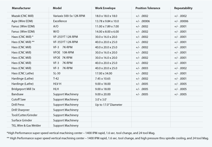 TEAM's state-of-the-art Machine Shop capabilities are very diverse, containing CNC Machining, Wire EDM, Sinker EDM, Precision Grinding, and Advanced Welding.